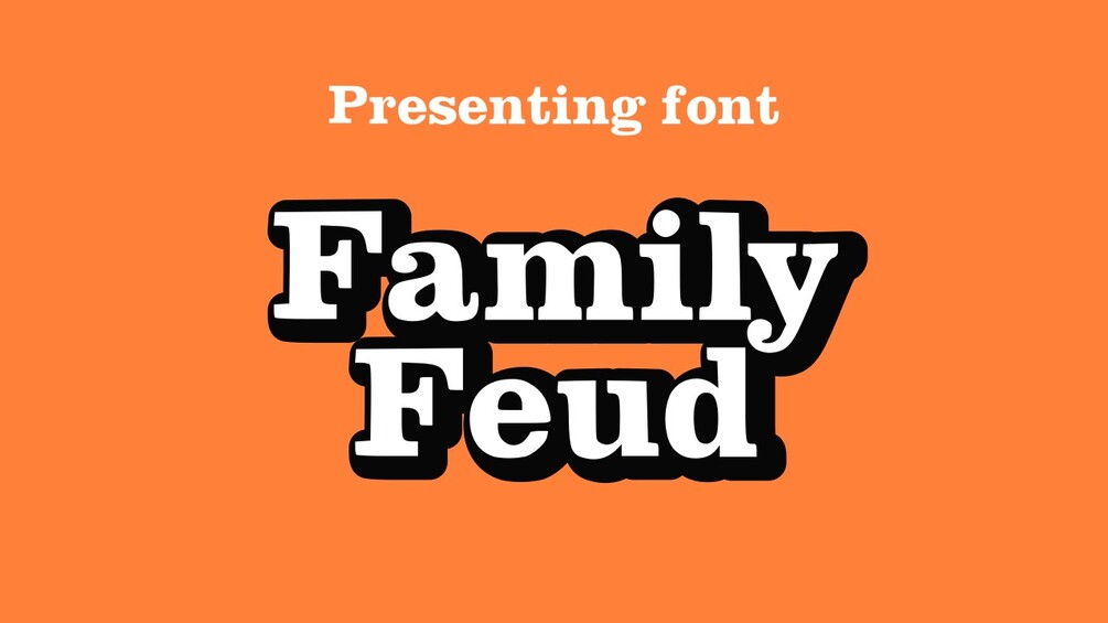 Family Fued font$20$20https://schema.org/InStockusdfonts birdfonts birdI want this!Family feud font. 80 glyph, Capital, small letter, sign and symbol included Size11.4 KBAdd to wishlist New wishlistShare on XShare on Facebook Copy linkCopy product URL